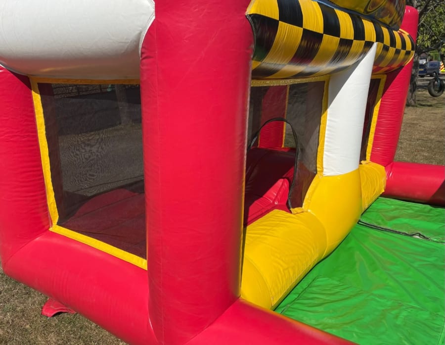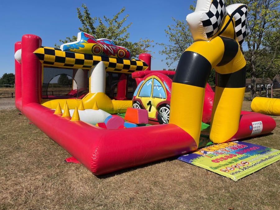 This '5 in 1' Inflatable Racing Cars Inflatable Play Zone includes;