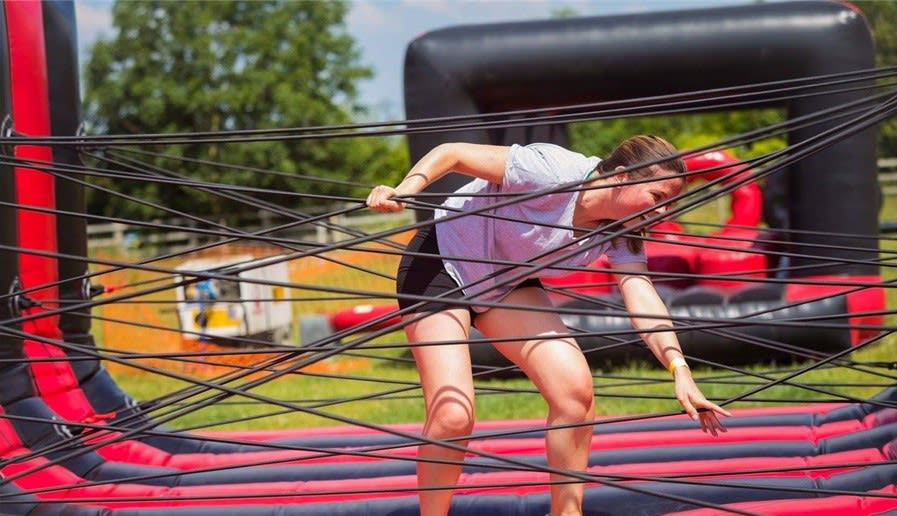 This fun Inflatable is a challenge to try and twist, slip and slide through the bungee cords all whilst taking your time to ensure success as it is harder than it looks!