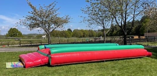 This fun Inflatable is a challenge as you try to crawl under the cargo net to reach the end!
