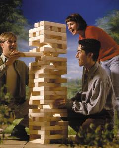 Build the tower, and when it's your go gently pull out the blocks, CRASH !! WALLOP !! BANG !!