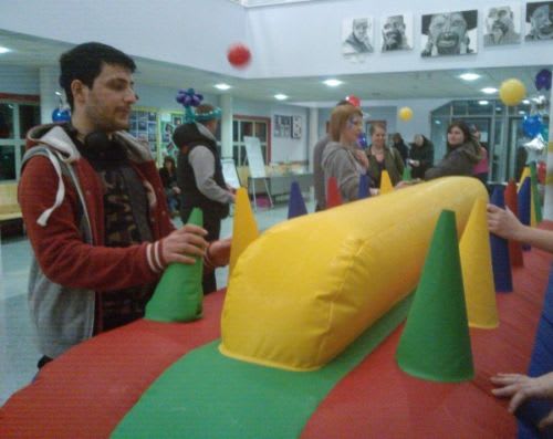 The object of the game is to juggle your ball from one cone to another using the air flow and drop it into the basket at the end!
