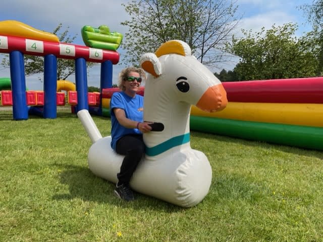 The object of the game is to bounce your inflatable horse (like a giant space hopper) to the end of the track to win the game, if you stand up your disqualified!