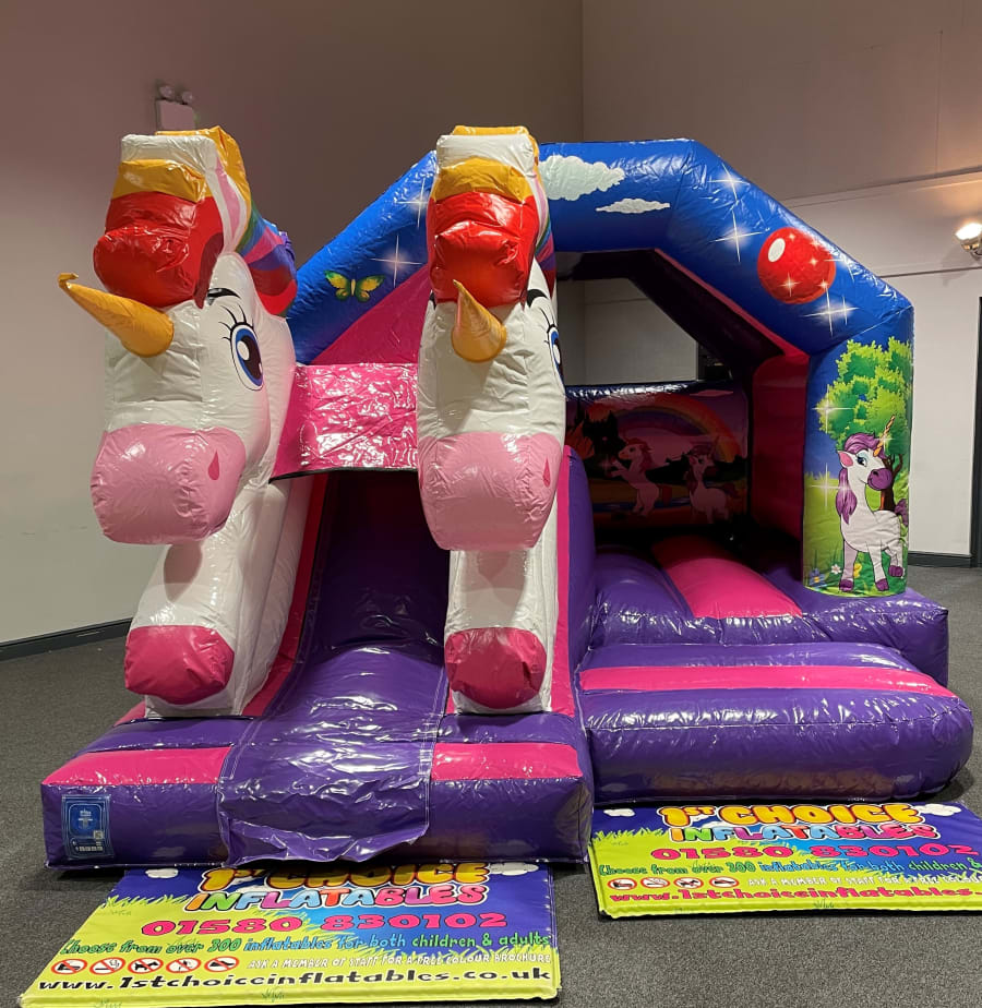3D Unicorn themed Slide Bouncer Bouncy Castle with Front Slide