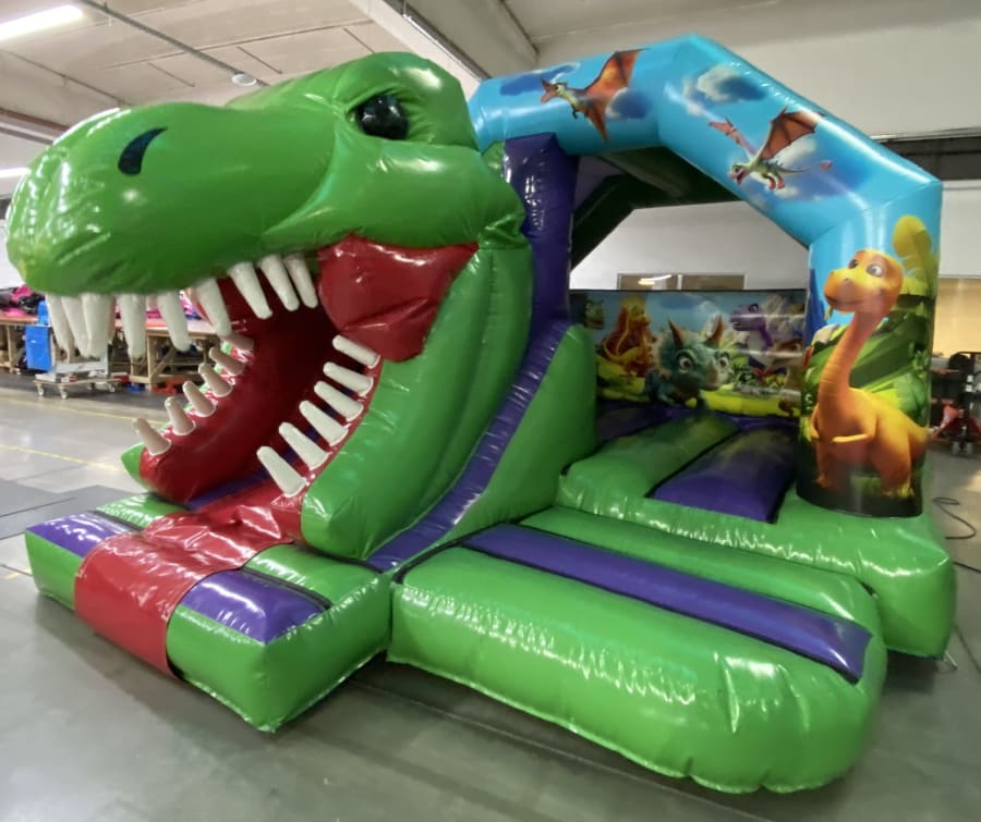 3D Dinosaur themed Slide Bouncer Bouncy Castle with Moving Head Front Slide