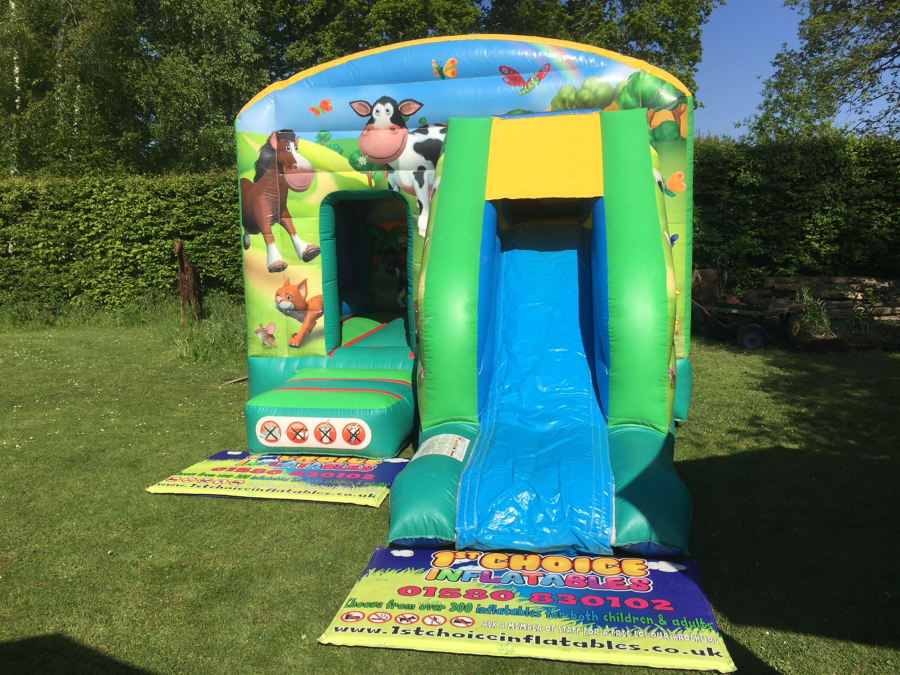 Farmyard themed Slide Bouncer Bouncy Castle with Front Slide