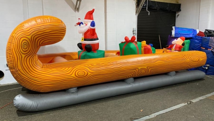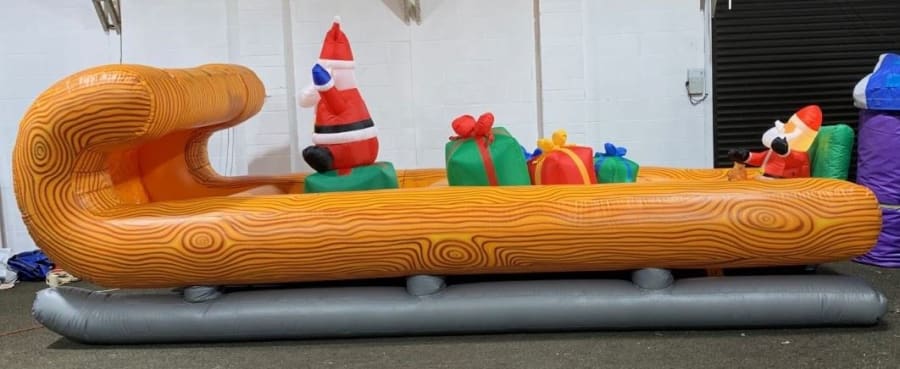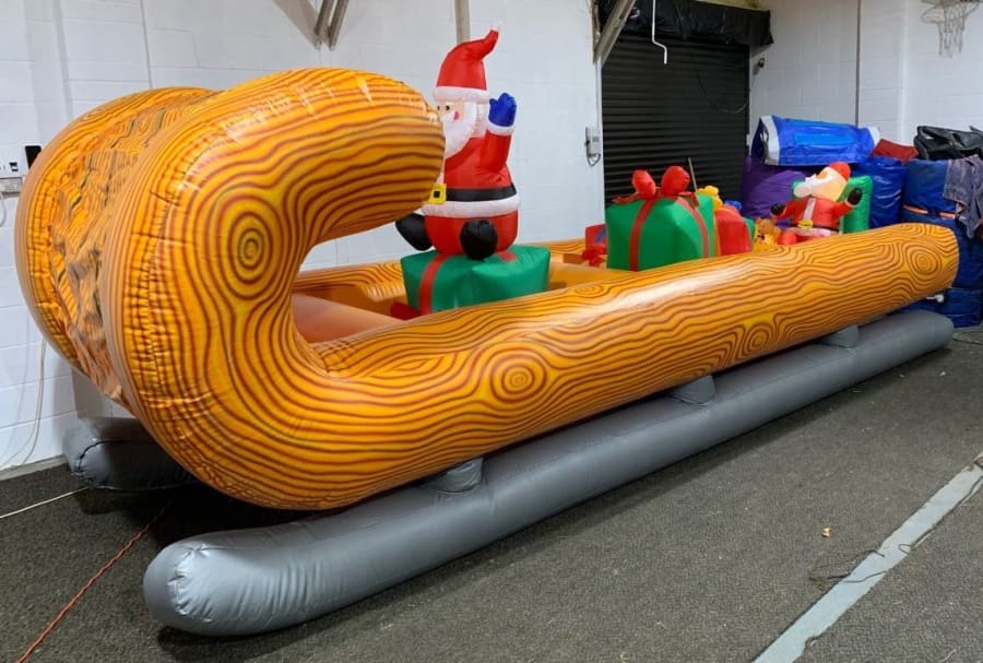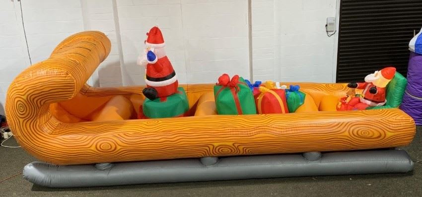 Comes with Inflatable presents and Santa's as seen in the photo, these are removable if you wish to use your own gifts or props.