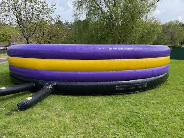 31ft Diameter Duck n Run Inflatable bed, manufactured by Airquee in 2017 but only ever used as a spare bed for the mechanical game we had when having back to back hires. Not used since 2019 as been in storage, photos taken May 2024. We sold the mechanical game and have this spare inflatable bed available.