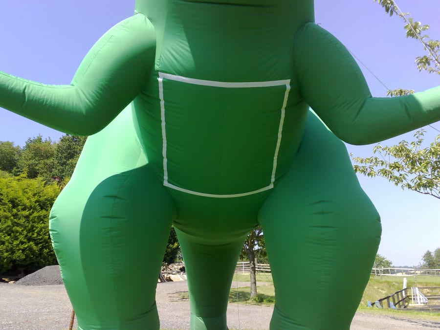 This inflatable has Velcro attached to the front allowing you to add a banner!