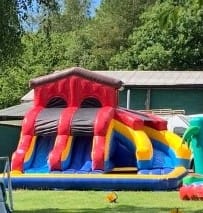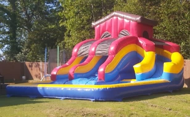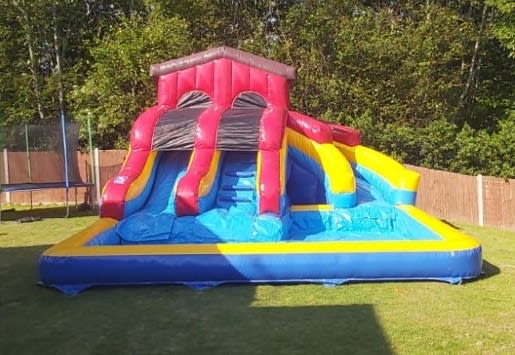 One lane is straight down into the pool and the other bends round to increase the fun!